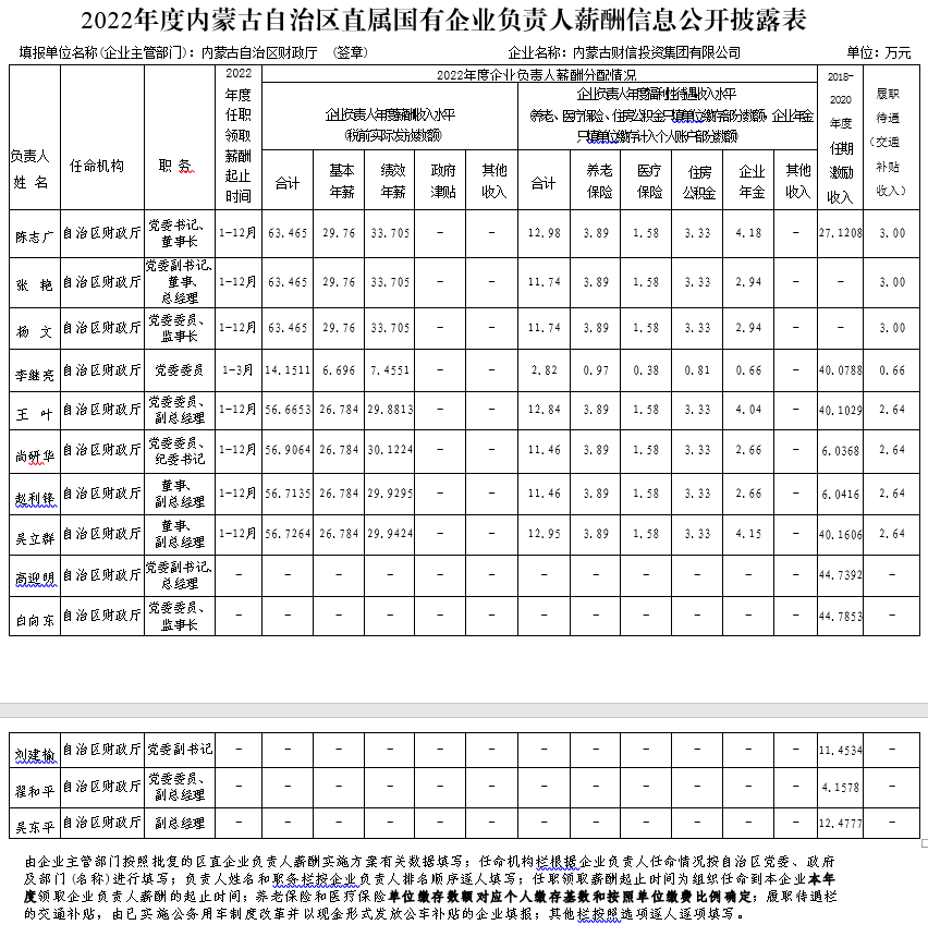 2022年度內(nèi)蒙古自治區(qū)直屬國(guó)有企業(yè)負(fù)責(zé)人薪酬信息公開披露表